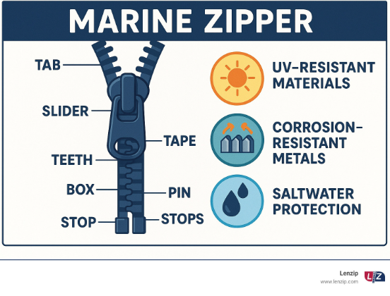 Marine zippers are specialized fasteners designed to withstand the harsh conditions of saltwater environments, UV exposure, and constant moisture that would destroy standard zippers in months.