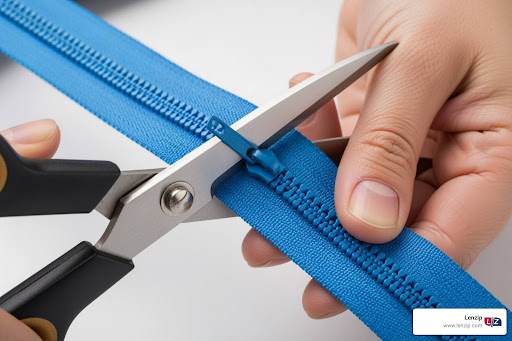Metal zippers need a bit more respect. While you can cut the tape itself with regular scissors, those metal teeth require special attention. You’ll need to carefully remove about 1.5 cm of teeth from one side near your cut using zipper pliers. This prevents the teeth from interfering when you attach the slider later.