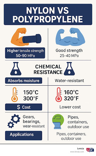 Understanding the properties of nylon vs polypropylene helps clarify where each material excels in the real world.